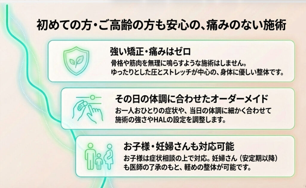 HAL®を用いない従来の施術ももちろん大歓迎です。まずはご相談からお気軽にどうぞ!