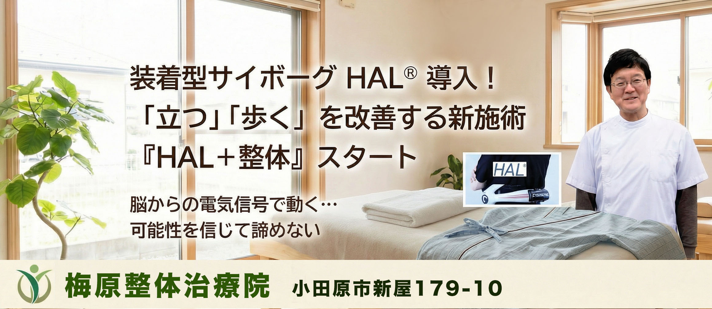 従来のリハビリで効果を感じなくなってしまった方に朗報です。当院では、国立病院や高齢者リハビリ施設でも利用が広がっている注目のサイボーグ型ロボット「HAL®(ハル)」+整体を用いた施術をスタート!