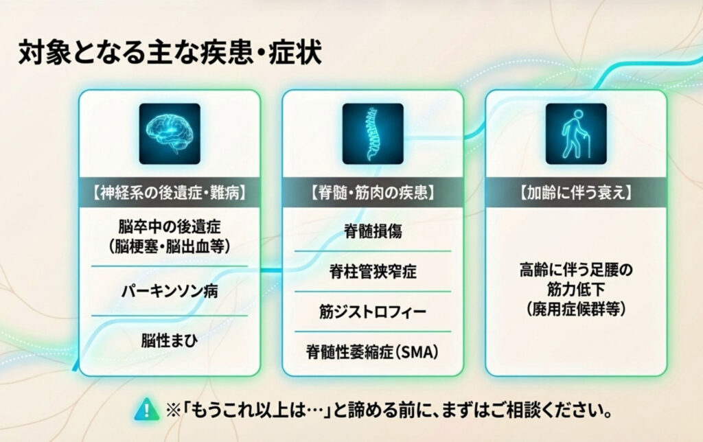 - 高齢に伴う足腰の筋力低下 (廃用症候群等)